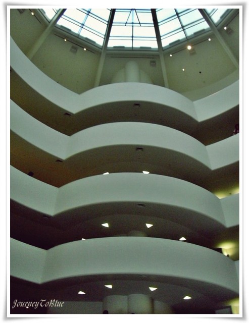 2. Bugun de gunumun bir kismini Bezen’le ogle yemeginde gecirdikten sonra, onun is yerinin bulundugu 50. cadde’den 86. cadde’de bulunan Guggenheim Muzesi‘ne kadar yurudum! Bu muzeyi gecen yil atlamisim, hemen acigi kapatayim dedim. Iyi ki de demisim.. Zira bundan boyle yakin takip edecegim 2 yeni isimle tanistim muzede: Ilki, siyah-beyaz (agirlikli nude/ciplak) fotograflarini ilgi ile inceledigim fotografci Robert Mapplethorpe. Ikincisi ise ressam Barones Hilla Rebay. Rebay, Guggenheim’in sanat danismanligini ve muzenin ilk direktorlugu gorevlerini de surdurmus.. Kolajlari ve yagli boya calismalari cok enteresandi. (Vasily Kandinsky’den etkilendigi cok belirgindi. Muzede, Kandinsky’nin de cok guzel eserleri vardi.) Ne yazik ki fotograf cekmek yasakti, as usual! Ben de enteresan tasarimi olan (Mimari: Frank Lloyd Wright) muzenin ic mekanindan bir-iki goruntu fotografladim.